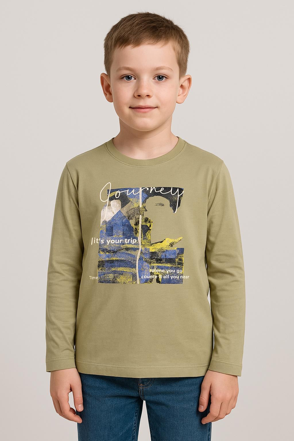 Astro “Journey” 2-piece Long Sleeve Tee – khaki & Heather Grey | Boys Graphic Adventure Shirt
