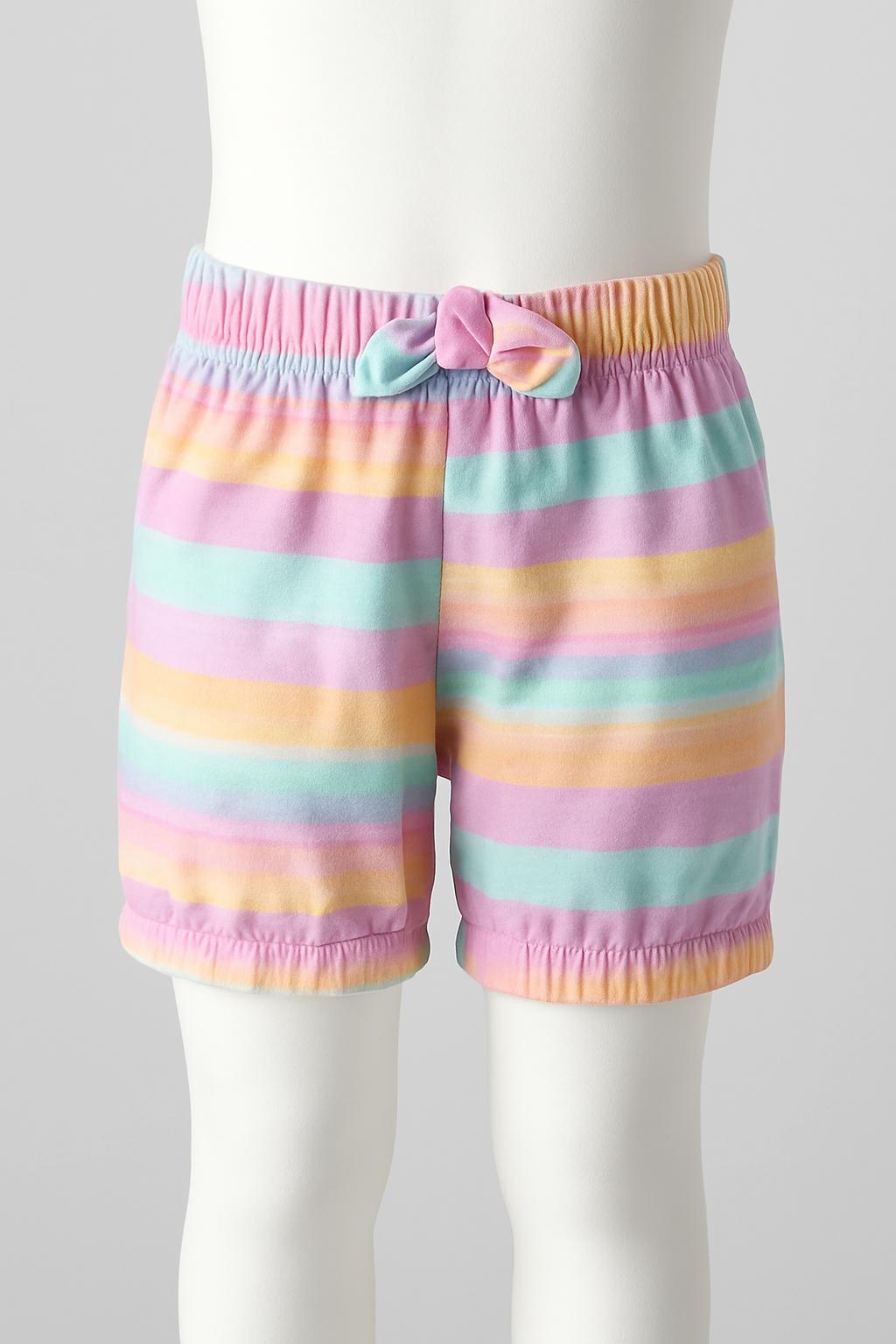 The cheerful rainbow stripes in pastel shades of pink, purple, yellow, and mint make it a fun, stylish choice for sunny days, playdates, or lounging at home. Perfect for warm-weather adventures!