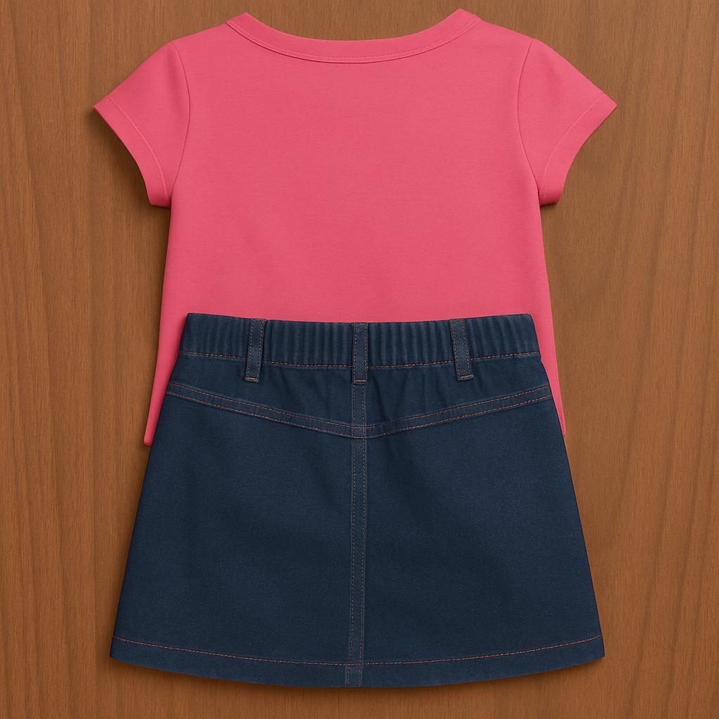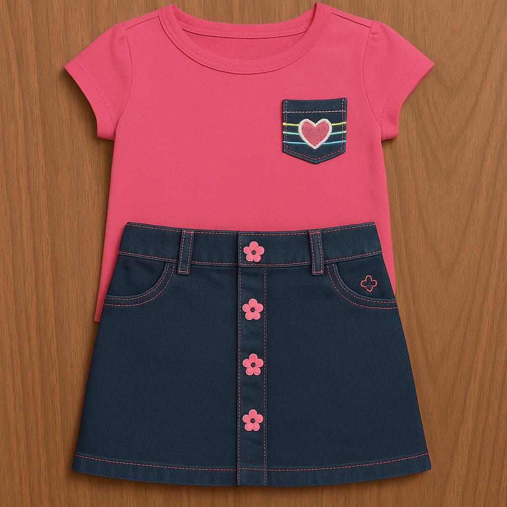 This cute and casual two-piece set from BT Limited Too is perfect for your little fashionista! Featuring a bright pink short-sleeve tee with a fun heart patch on the chest pocket, and a dark denim skirt with adorable pink flower buttons, this outfit is all about comfort and charm. The soft cotton blend top pairs perfectly with the durable, stylish skirt—making it ideal for playdates, parties, or everyday adventures.