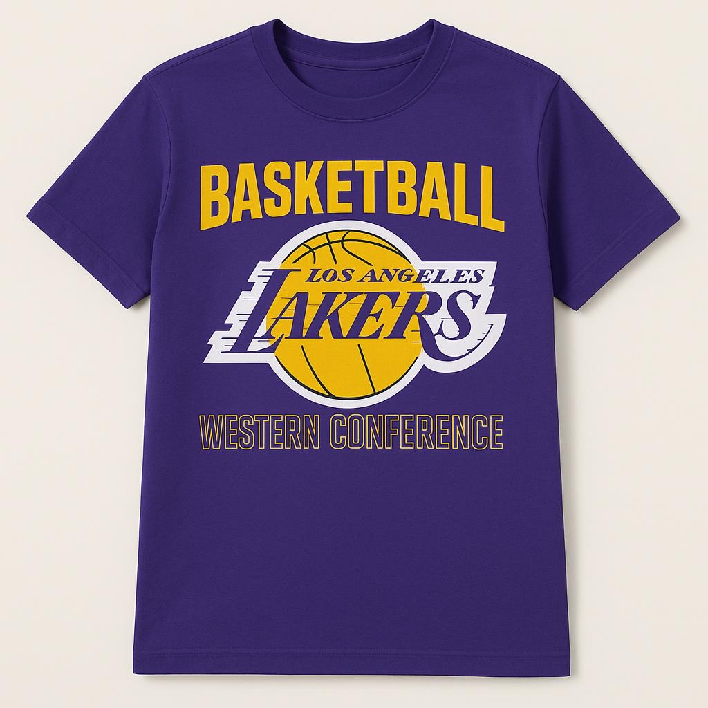 - Iconic Los Angeles Lakers logo and bold “Basketball” print