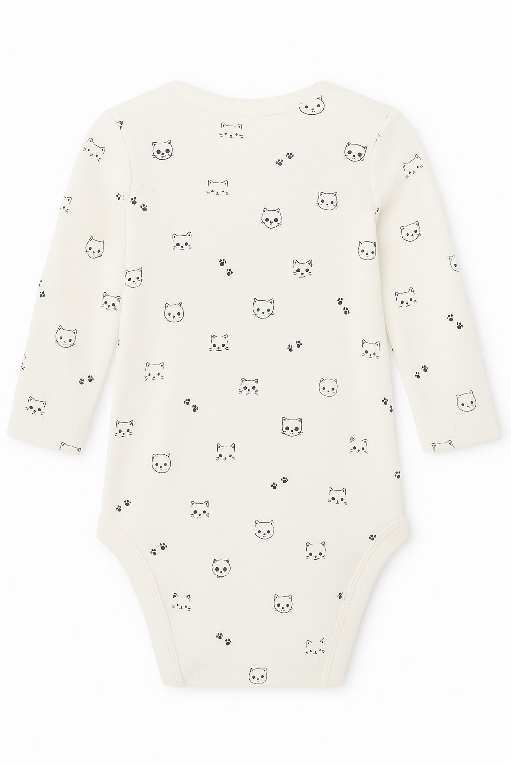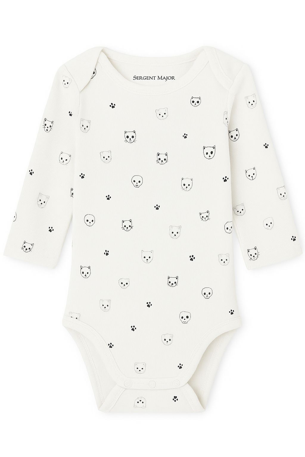 This creamywhite Short Sleeve Bodysuit by sergent major brand features an adorable cat head and paws design all over. Made with soft cotton, it has an envelope neck and pin clip by the crutch for easy changing. A playful and comfortable addition to your little one's wardrobe.